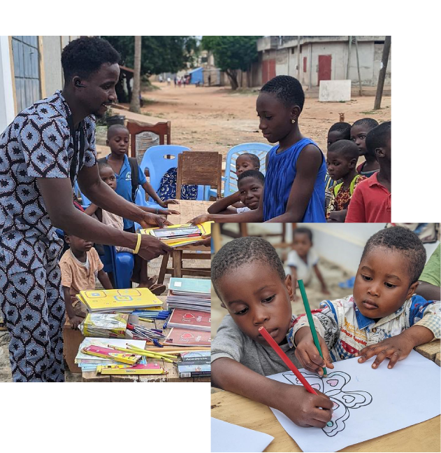 Nous soutenons l'éducation des enfants à travers des séances de soutien scolaire...